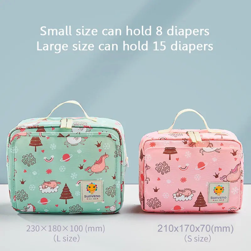2. **Generous Capacity**: Say goodbye to bulky diaper bags – our small size can hold 8 diapers, while the large size can accommodate up to 15 diapers, keeping you prepared for anything.
